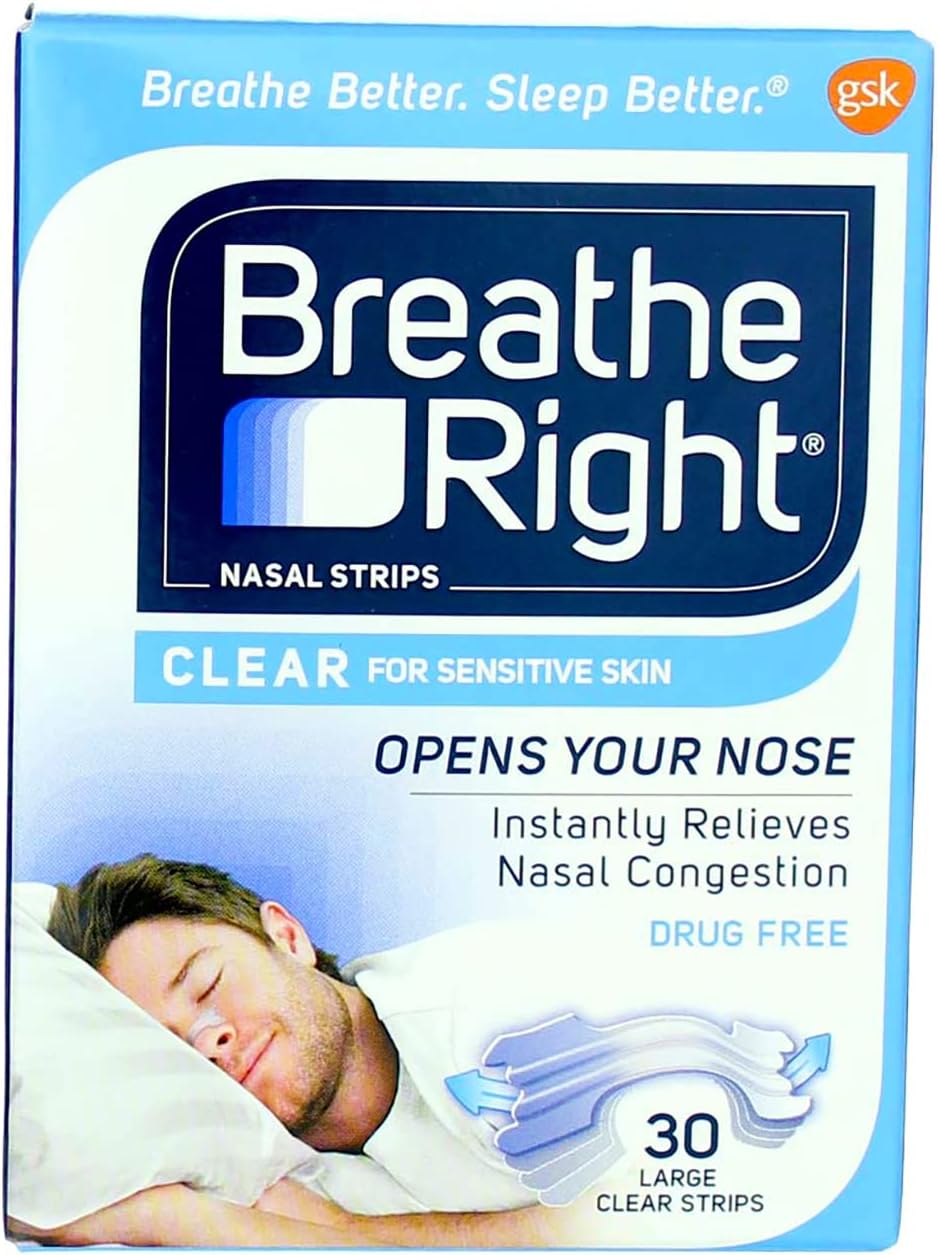 Amazon Com Breathe Right Nasal Strips Clear For Sensitive Skin Large 30 Each Pack Of 7 Health Household