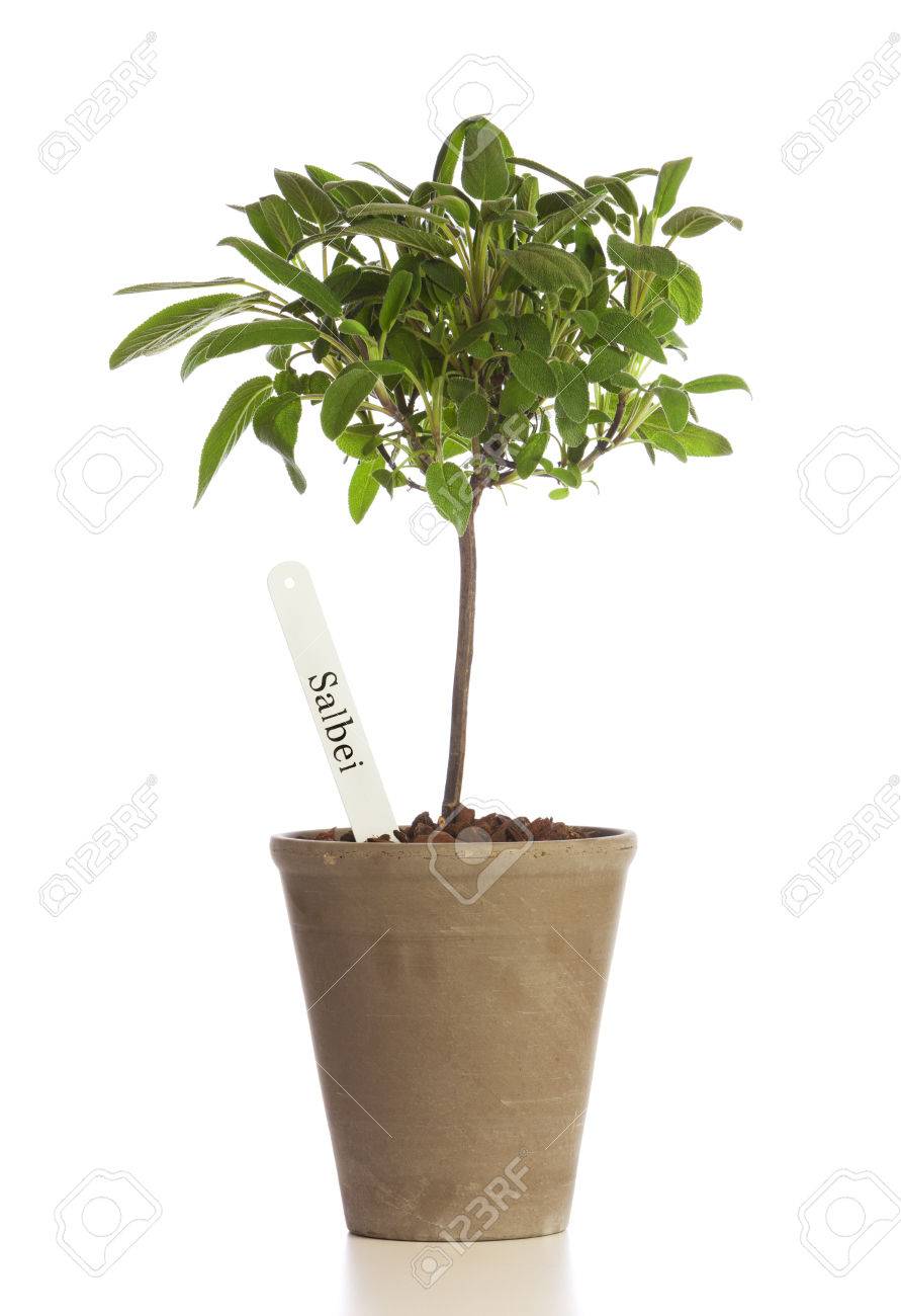 Sage Plant In Flower Pot With German Name Tag Isolated On White Background Stock Photo Picture And Royalty Free Image Image 70873035
